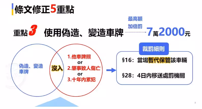 同時提醒民眾,所有非向公路監理機關申領的車牌均屬無效,無論是進口、製造、販售或使用偽造號牌,都已觸犯法律。