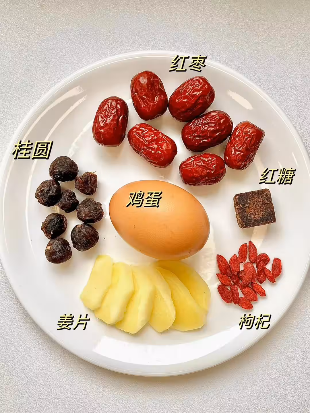 食材:雞蛋,紅棗,紅糖,桂圓,薑片,枸杞