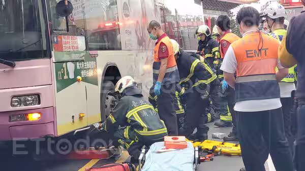 救援人員發現,這名60歲的周姓醫師被捲入公車左前輪下方。