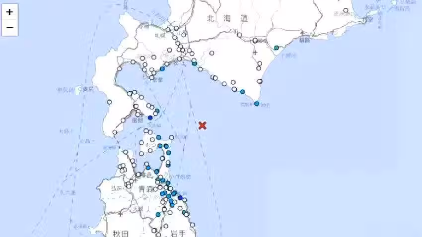 根據日本氣象廳通報,地震發生於當地時間11時54分左右,最大震度3級的地區包括北海道函館市、青森縣東通村以及青森縣階上町。