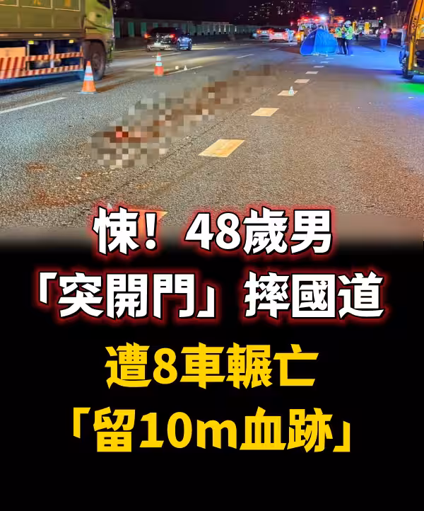 悚!48歲男「突開門」摔國道 遭8車輾亡「留10m血跡」