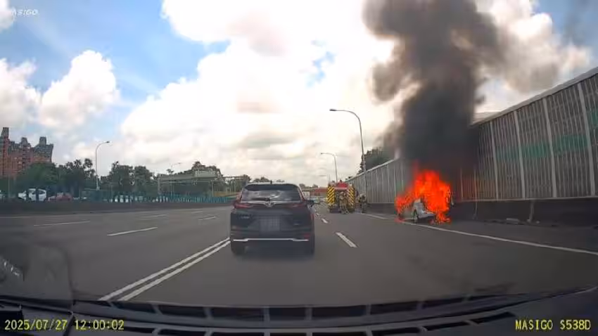 國道火燒車變一團火球! 「車子溫度過高」4人急停路肩逃生