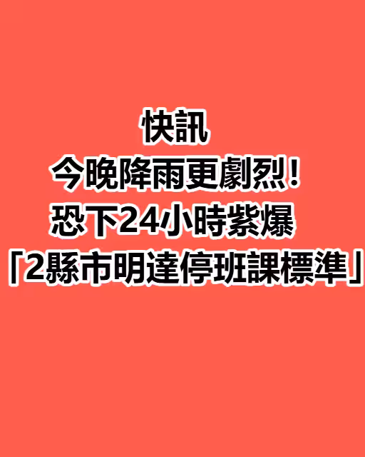 快訊/今晚降雨更劇烈!恐下24小時紫爆「2縣市明達停班課標準」