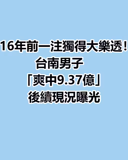 16年前一注獨得大樂透!台南男子「爽中9.37億」後續現況曝光