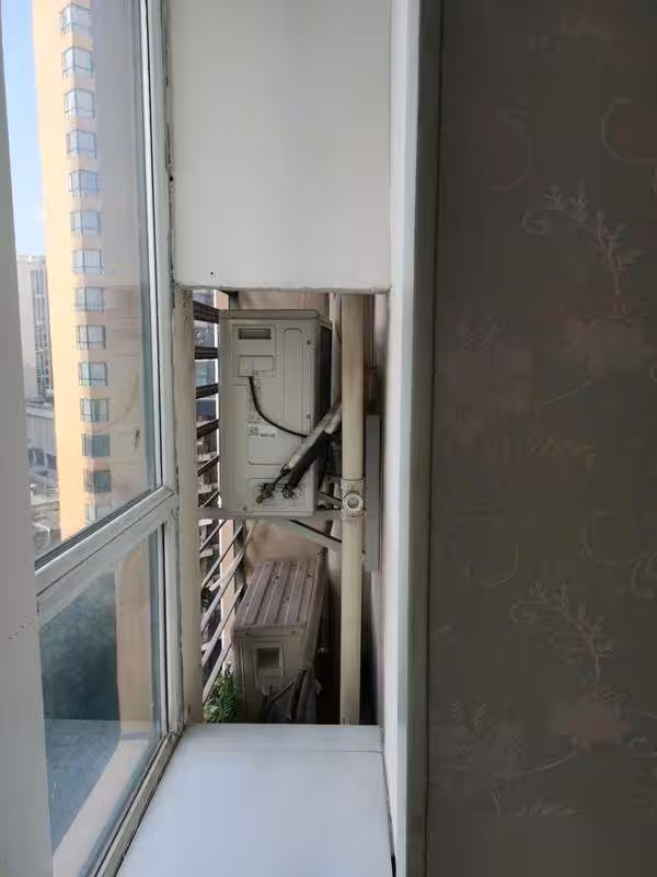 首先是外機距離太長──他家內機在客廳,外機卻在我家窗外,管道拉得老長。