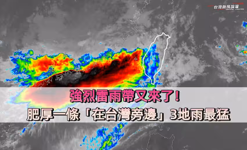 強烈雷雨帶又來了!肥厚一條「在台灣旁邊」3地雨最猛