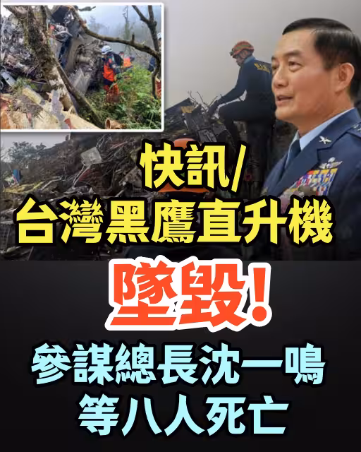 快訊/台灣黑鷹直升機墜毀,參謀總長沈一鳴等八人死亡...