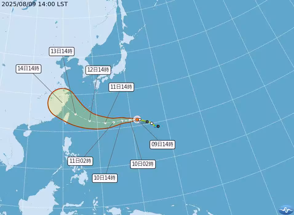 氣象署預報員劉沛滕表示,颱風下周一(11)、下周二(12)移動過程中,強度會略為增強,雖在靠近台灣時略為減弱,但強度以及外圍環流仍帶來明顯雨勢。