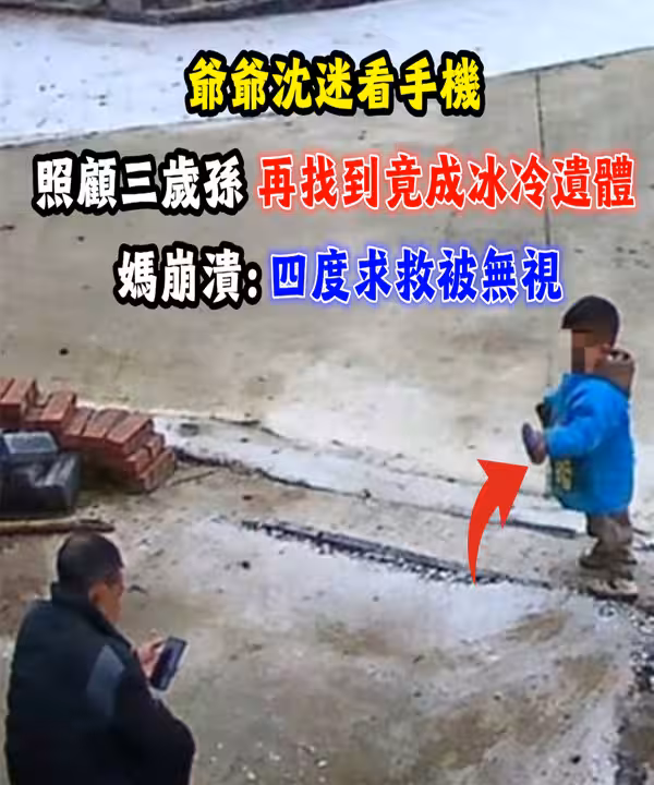 爺爺沉迷看手機!照顧三歲孫「再找到竟成冰冷遺體」 媽崩潰看監視器「四度求救被無視」
