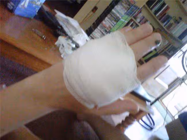 手術完後她的手被全部包住了。
