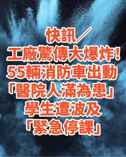 快訊/工廠驚傳大爆炸!55輛消防車出動「醫院人滿為患」學生遭波及「緊急停課...」