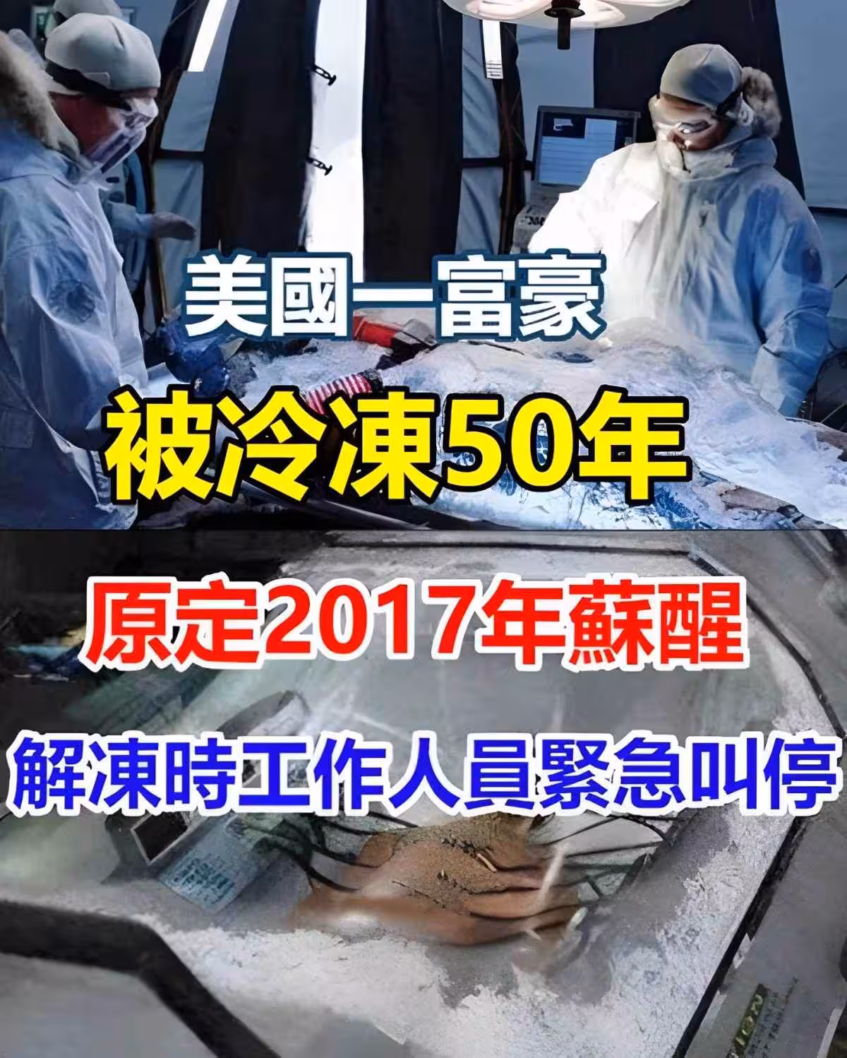 美國大富豪被冷凍50多年,原定2017年甦醒,解凍時工作人員緊急叫停!