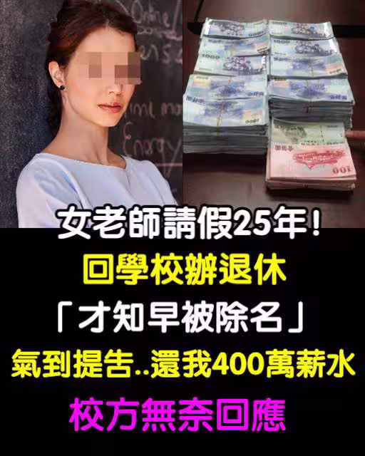 女教師請假25年!!昨天回學校辦退休「才知早被除名」氣到提告「還我400萬薪水」校方無奈回應