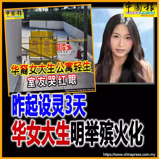 (吉隆坡22日訊)「華裔女大生疑被霸凌墜亡」案;女死者遺體已由家屬領出,設靈3天後舉殯。