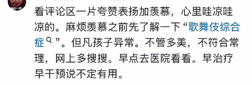 她認為這麼小的孩子卻這麼美,實在是太不正常了,讓她想起了日本曾有過的「歌舞伎綜合症」,面部就是這種自帶妝容的特徵。