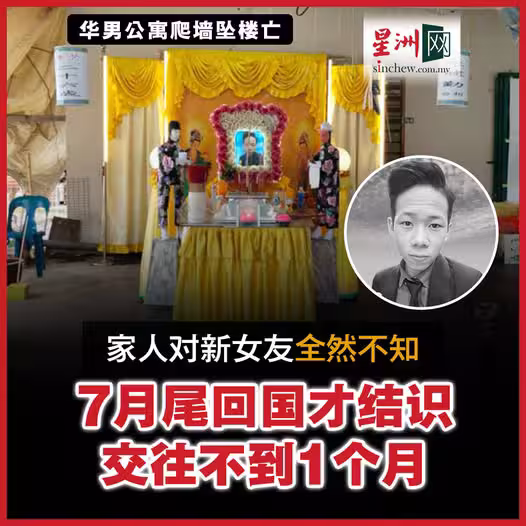 (美羅24日訊)因凌晨找女友爬牆墜樓身亡的陳健勤於7月尾從國外返馬,在期間結識第4任女友,而家屬對該任女友身份全然不知。
