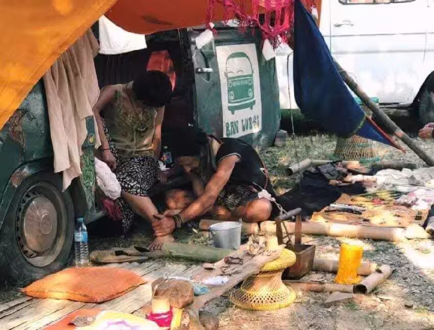在山上、在林間,兩人隨地居住,有時候經常在山裡醒來,睜開眼就能看見帳篷周圍被牛羊包圍了。