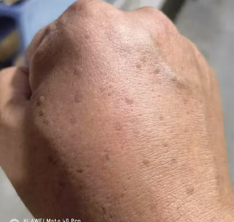 他決定去醫院進行專業的皮膚檢查,以確認這些小點點的真正身份。