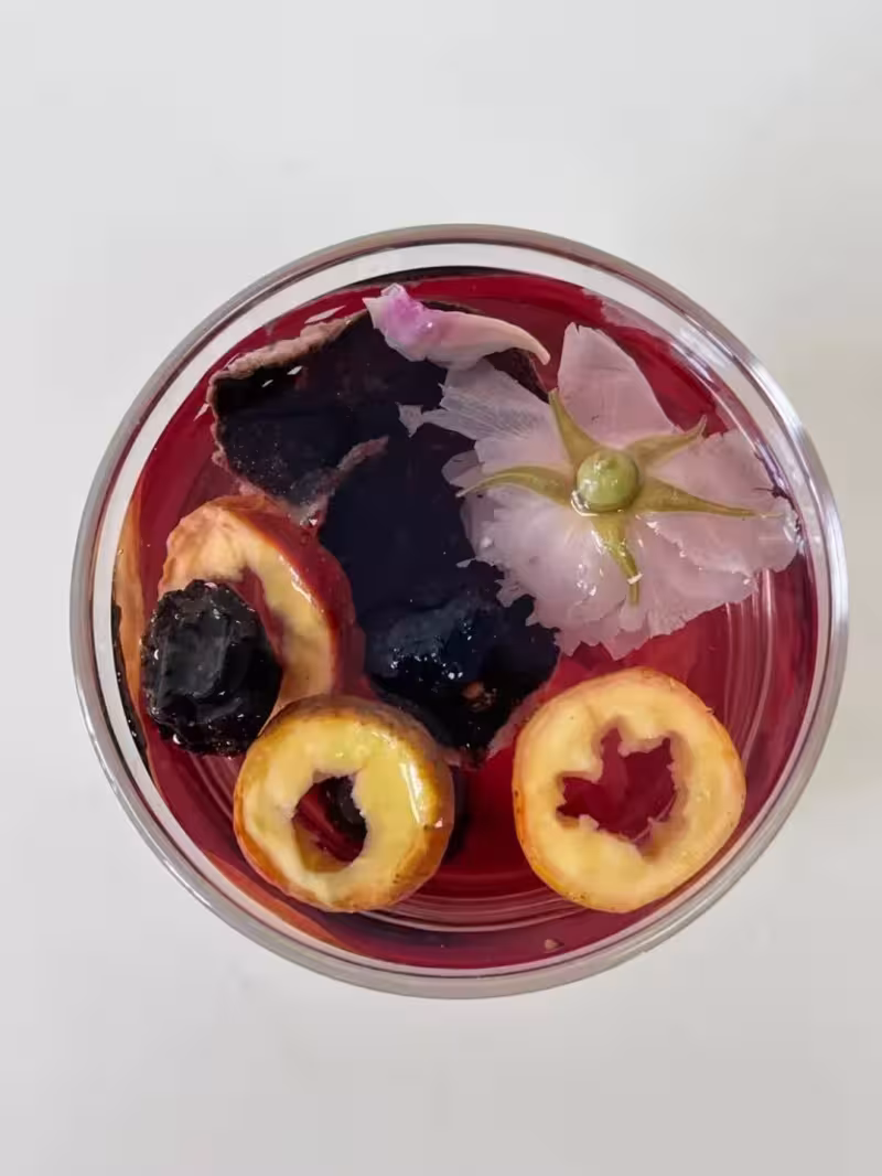 這種茶水用的都是平常材料,不難準備。需要烏梅四顆,陳皮大概三克,墨紅玫瑰兩朵,再加四片山楂,桑葚五克,茯苓也準備五克。