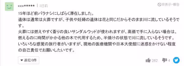惠子還稱,事後自己收到了許多為她感到擔憂的信息,還有不少了解恆河和病毒的人給她提建議,「我在反省了,也學到了很多。」