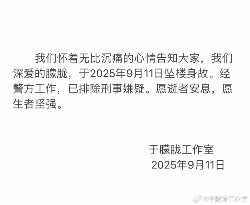 《三生三世》男星墜樓亡 工作室:願逝者安息