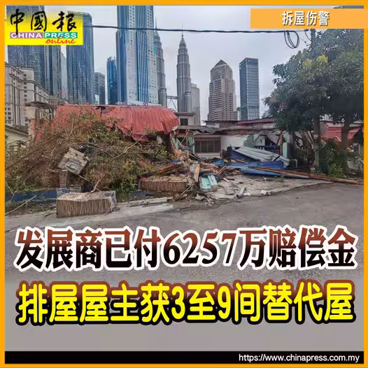 「至於排屋屋主則會獲得3至9間替代房屋,市價預計介於270萬至810萬令吉。」