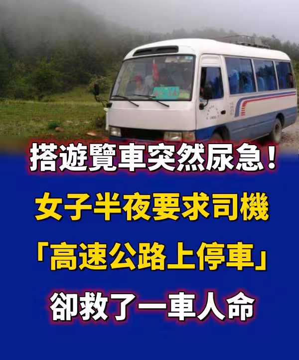 搭遊覽車突然尿急!女子半夜要求司機「高速公路上停車」 卻救了一車人命。