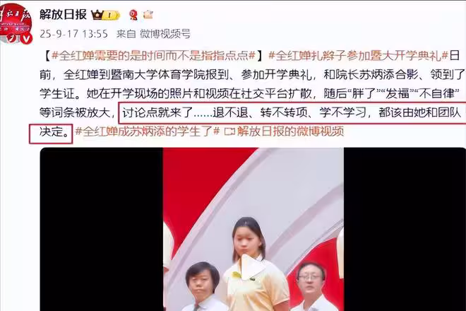 全紅嬋入學僅5天,被嘲發福、沒學歷,官媒:學不學由她自己決定