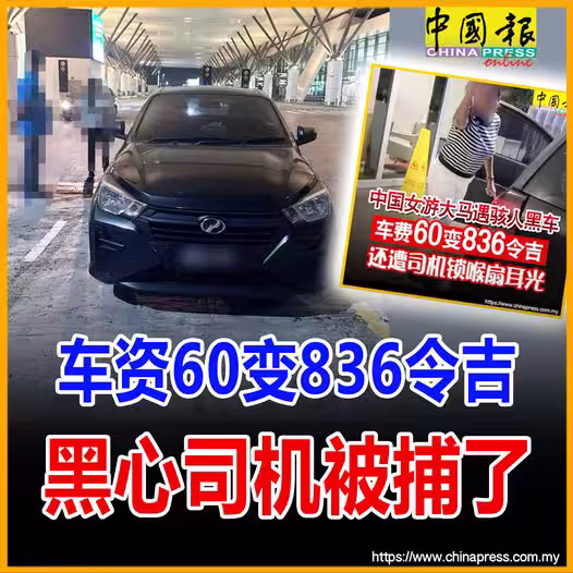 (吉隆坡22日訊)交通部長陸兆福指出,涉嫌在吉隆坡國際機場第二航站樓(KLIA T2)獻議中國遊客以60令吉價格載送,卻向對方索討836令吉車資的黑心司機,已遭陸路交通局扣留。