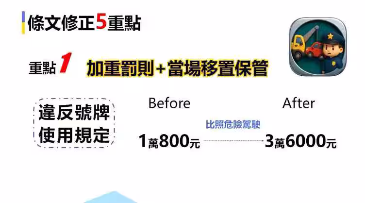 若駕駛人明知車輛的車牌有問題仍執意上路,也將被處以最高3萬6000元的罰款。