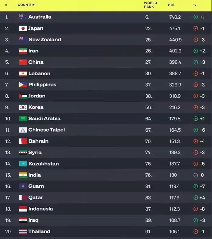 實際上,這次排名是按照以前積分的總和計算得來,不然僅僅憑藉男籃亞洲杯成績的話,中國男籃要在日本男籃、紐西蘭男籃之上。而中國男籃要想在FIBA男籃上繼續提升名次,最好的方式就是通過男籃世界盃或者奧運會這種大型國際賽事,但前提是中國男籃要獲得男籃世界盃的入場券,緊接著才能參加奧運會。