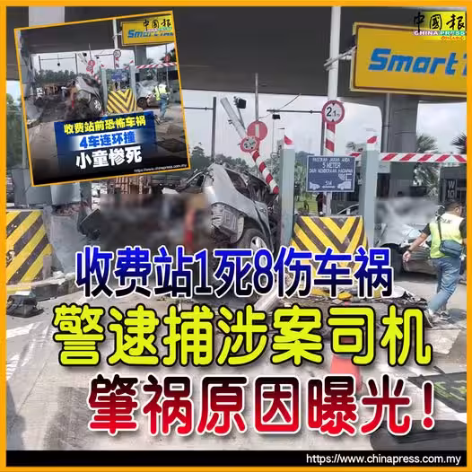 警方證實,針對武吉加影收費站發生4車連環撞釀1死8傷案,已逮捕肇禍羅厘司機,初步相信羅厘因煞車器故障,以致釀發嚴重車禍。