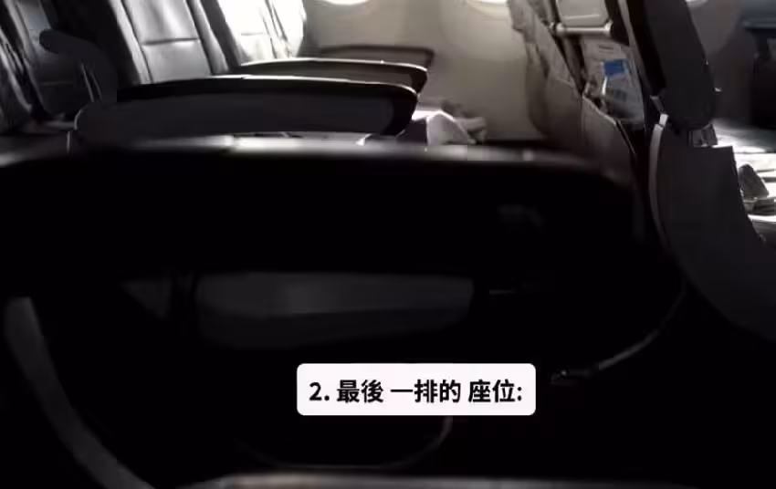 2. 最後一排的座位 這個位置常常是「被剩下」的,這些椅背不能完全後躺,後面是牆,完全沒得靠。 送餐、收餐總是等很久,熱門餐點常常早就被拿光,而且有些機型尾部引擎聲比較明顯,引擎噪音太大,讓人非常不舒服。