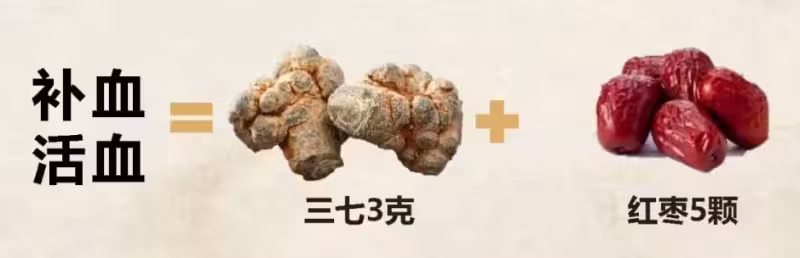 功效:紅棗富含維生素C和鐵元素,可促進血紅蛋白生成,補氣血;三七含三七皂苷,具有促進微循環、修復血管內皮功能,兩者結合優化血液流動性,改善氣血不足引起的乏力、頭暈症狀。