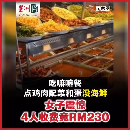 嘛嘛餐叫普通餐點沒海鮮 女子震驚4人收費竟RM230