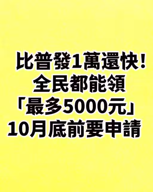 比普發1萬還快!全民都能領「最多5000元」 10月底前要申請