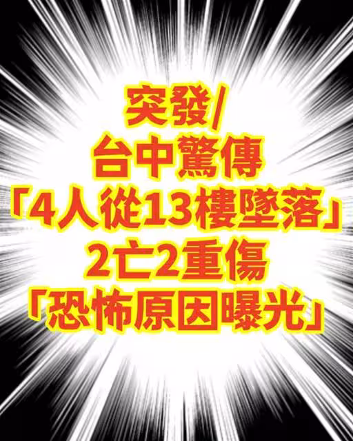 突發/台中驚傳「4人從13樓墜落」!2亡2重傷「恐怖原因曝光」