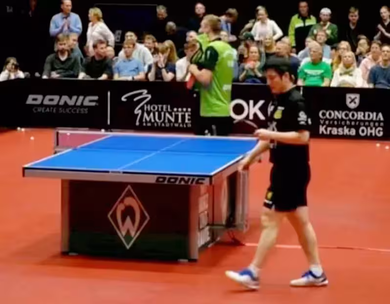 根據德甲規則,第五盤比賽由單打變成了雙打,對陣雙方分別是弗朗西斯卡/邁斯納、格拉斯門科/伯特蘭,結果樊振東的兩位隊友未能贏得勝利,最終以0-3的比分落敗(7-11、6-11、6-11),薩爾布呂肯俱樂部由此而總比分2-3不敵不萊梅隊。