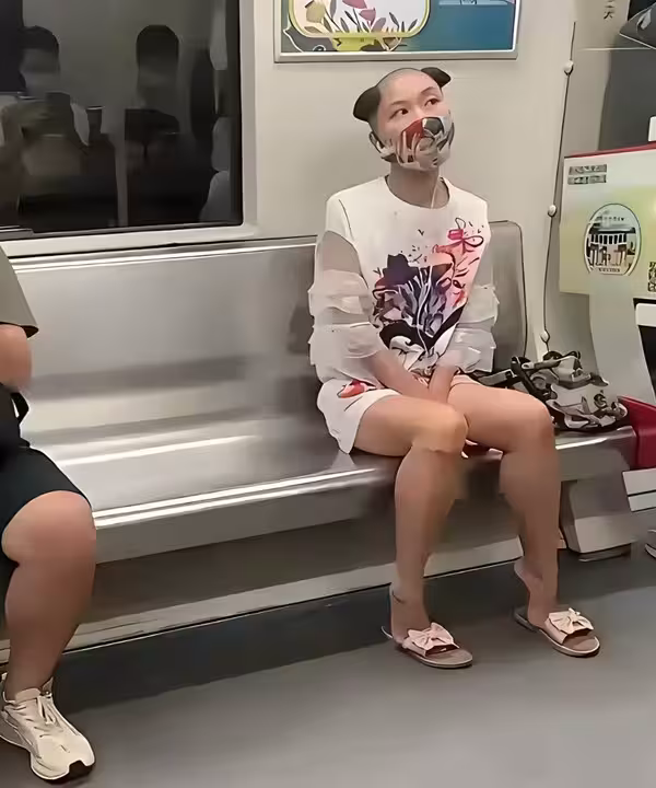 這身混搭風格讓整個車廂的人都忍不住多看兩眼。