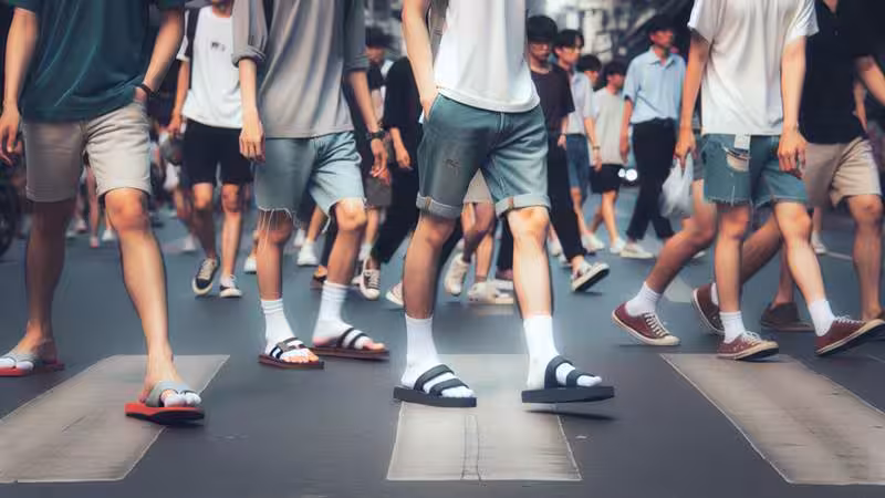 又潮又舒服!近來走在街頭或校園,常可見到不少年輕人腳上穿著「襪子配拖鞋」的新潮組合。這股風潮讓不少長輩霧煞煞,甚至有人在臉書發問:「穿拖鞋搭配襪子,是怕腳臭還是買不起鞋子?」一句玩笑話意外掀起熱烈討論。