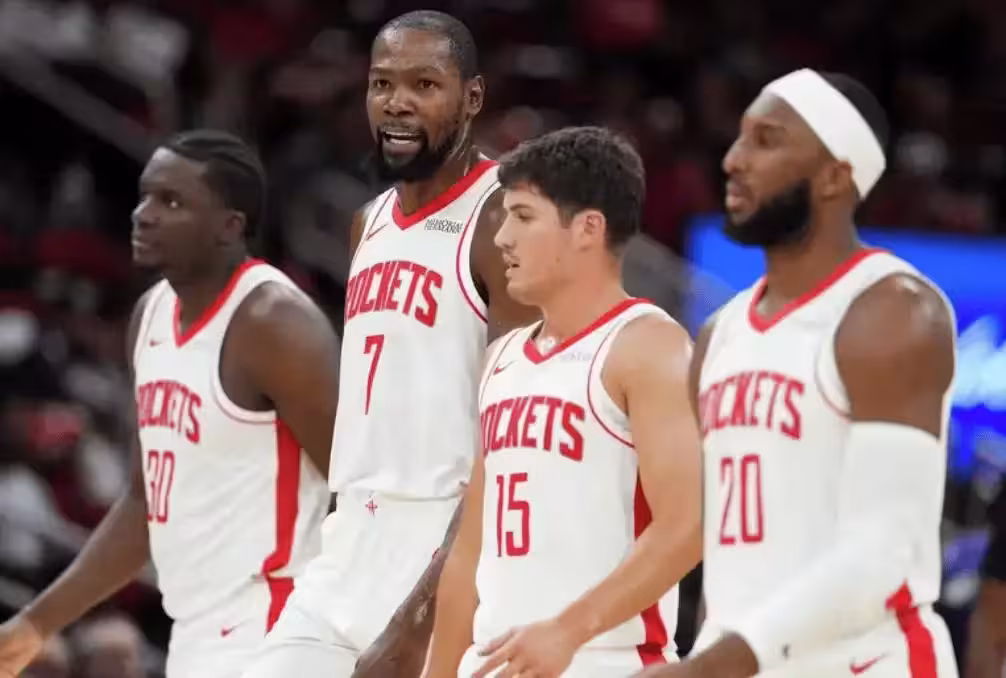 第二,火箭進攻火力太猛了,前三場季前賽,他們分別得到122分,140分和130分,這與他們的身體天賦,運動能力有一定關係,本身這兩項都是聯盟頂級,又有杜蘭特這樣的高效得分手,再加上火箭快速的攻防轉換,喜歡打搶投,這樣一來,他們的場均得分就特別高,會給對手帶來很大的壓迫感。