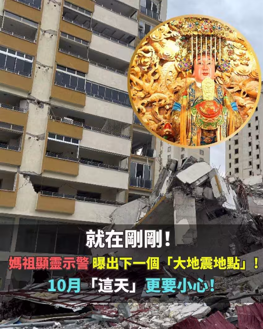 就在剛剛!媽祖顯靈發出緊急通知,下一個「大地震地點」!10月「這天」更要小心!
