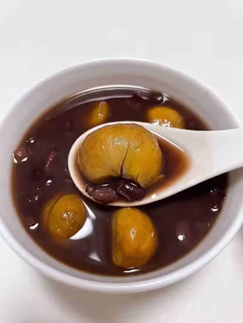 煮好這個湯後,我盛了一碗趁熱喝。湯的味道甜甜的,豆子煮得很軟,板栗吃起來粉粉的。