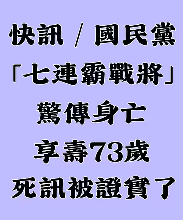 快訊/國民黨「七連霸戰將」驚傳身亡!死訊被證實了