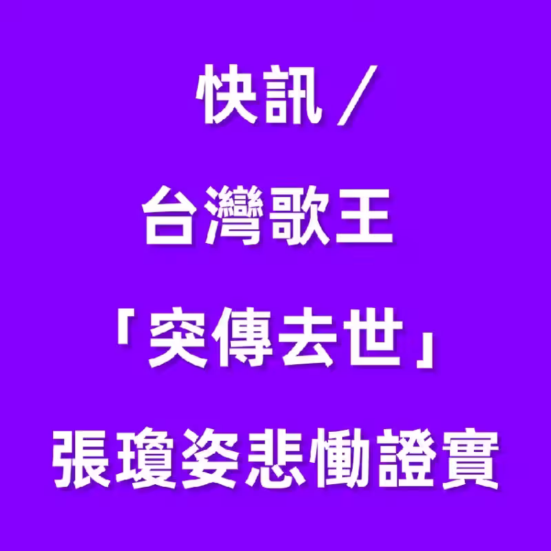 快訊/台灣歌王 「突傳去世」!張瓊姿悲慟證實