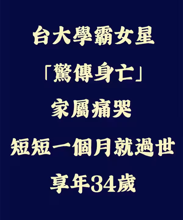 快訊/台大學霸女星「驚傳身亡」死因曝光!家屬痛哭:「短短一個月就過世!」