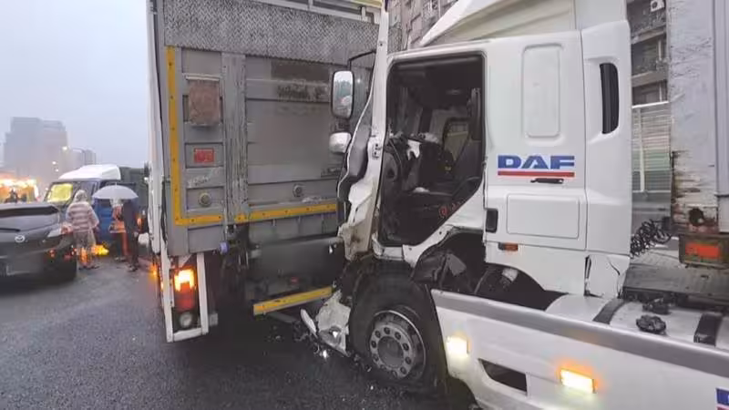 國道4車撞一團! 小貨車打滑 駕駛下車看遭撞飛輾斃