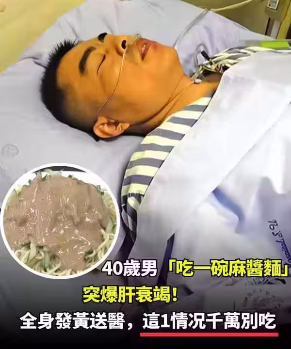 40歲男「吃一碗麻醬麵」突爆肝衰竭!全身發黃送醫,這一情況千萬別吃!