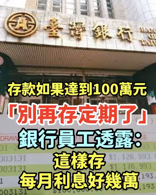 存款如果達到100萬元「別再存定期了」銀行員工透露:這樣存,每月利息好幾萬