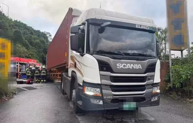 瑞芳驚傳死亡交通事故!機車騎士捲入貨櫃車底 遺留血跡安全帽碎裂